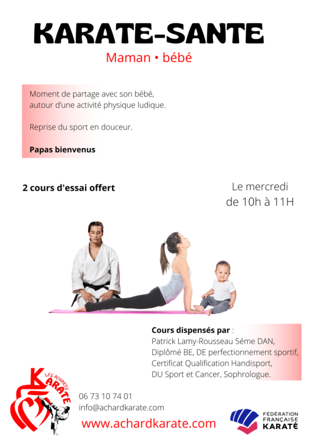 Le karaté santé, maman avec bébé est un concept novateur, ou maman, à côté, ou avec bébé, pratiquera une activité physique.